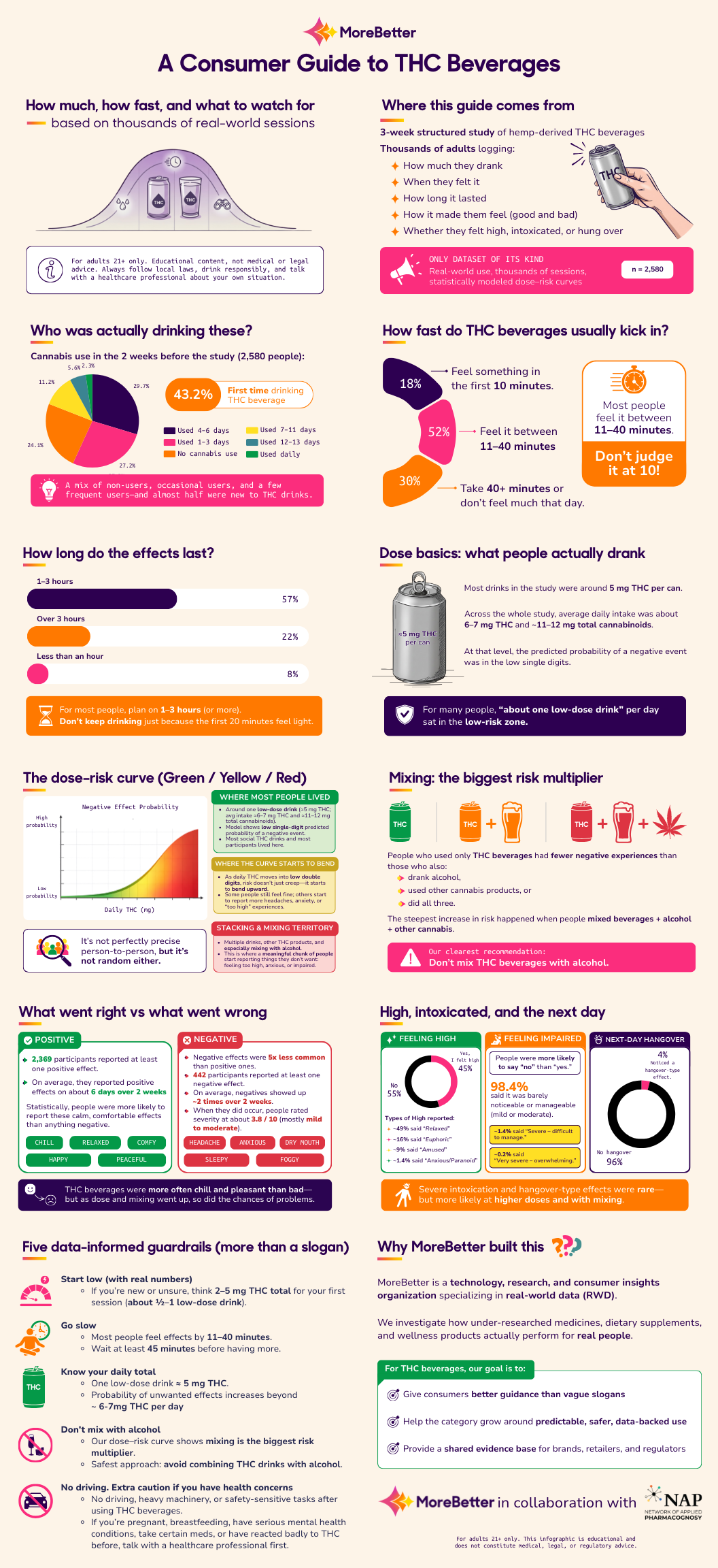 If you’re a retailer, manufacturer, venue owner, or operator who needs more than “start low and go slow,” click here to purchase MoreBetter’s THC Beverage Dose–Risk Curve report—a statistically rigorous, dose-by-dose model of the probability of negative events across THC, total cannabinoids, and common co-use patterns.
